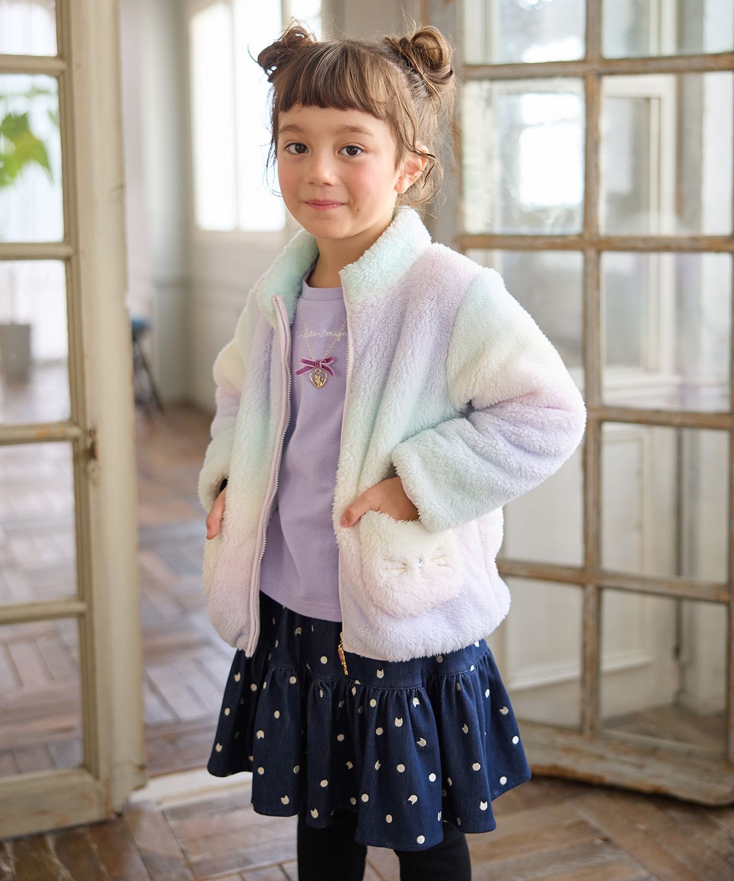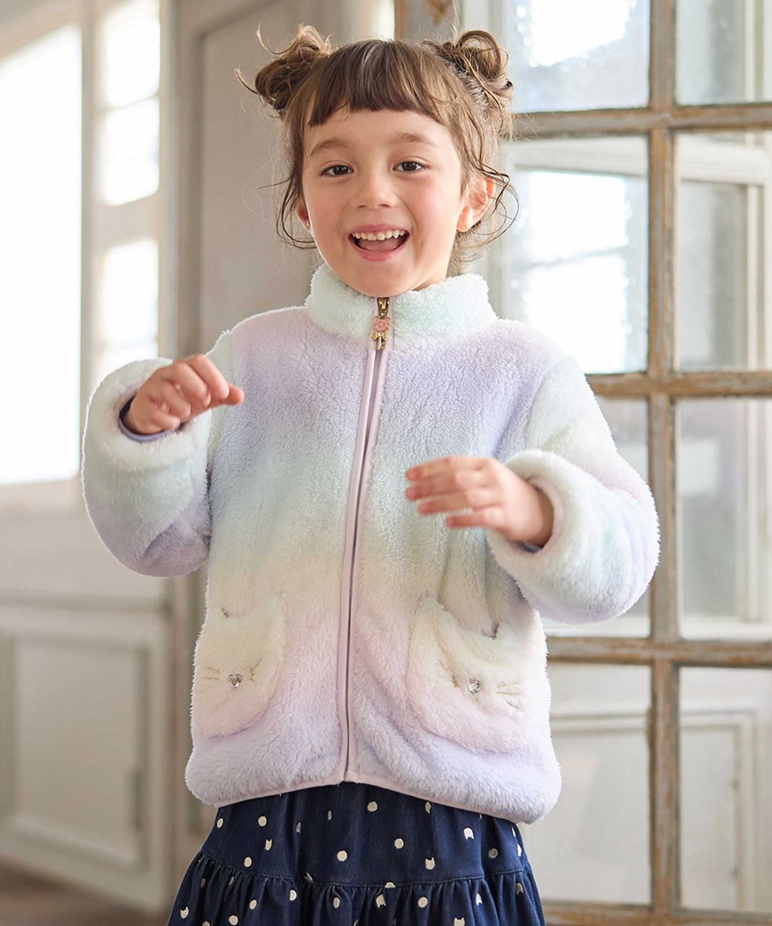 #ANYKIDS #貓咪絨毛外套 #可拆式外套 #秋冬童裝 #女孩穿搭 #日系童裝 #親子穿搭 #通學穿搭 #2fishkids