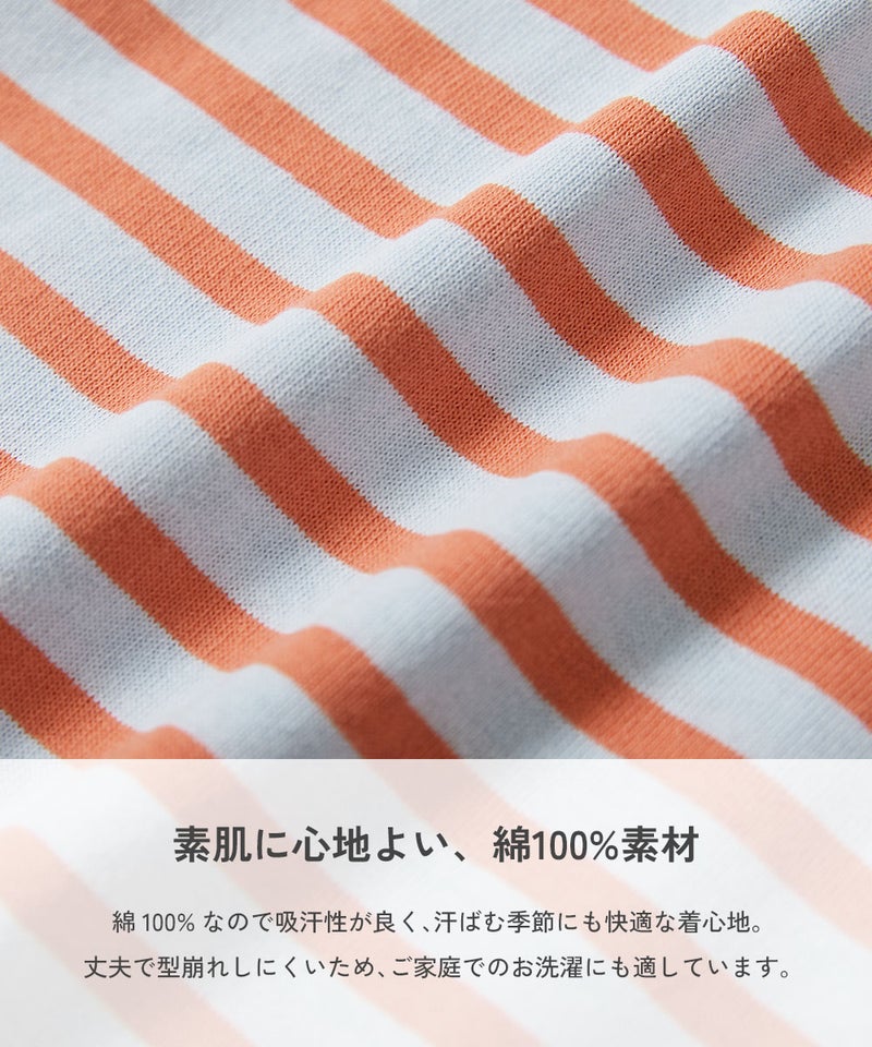 親膚舒適的純棉100%材質。純棉吸汗性佳,即使在容易流汗的季節也能舒適穿著。扎實耐穿不易變形,適合家庭洗滌。