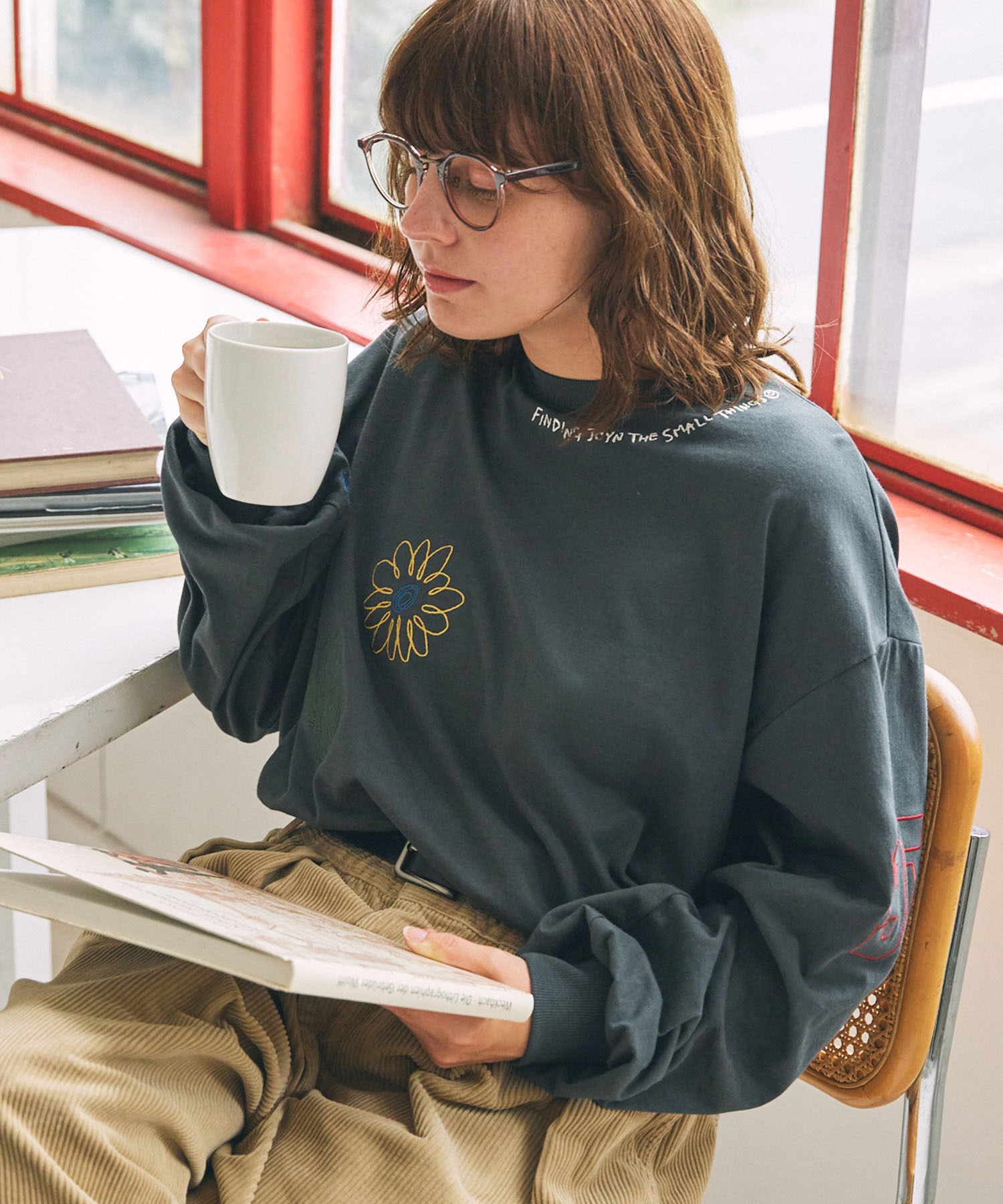 2025🇯🇵MONO-MART|配色落書刺繡寬版長袖T恤|手繪感刺繡 × 玩味個性風